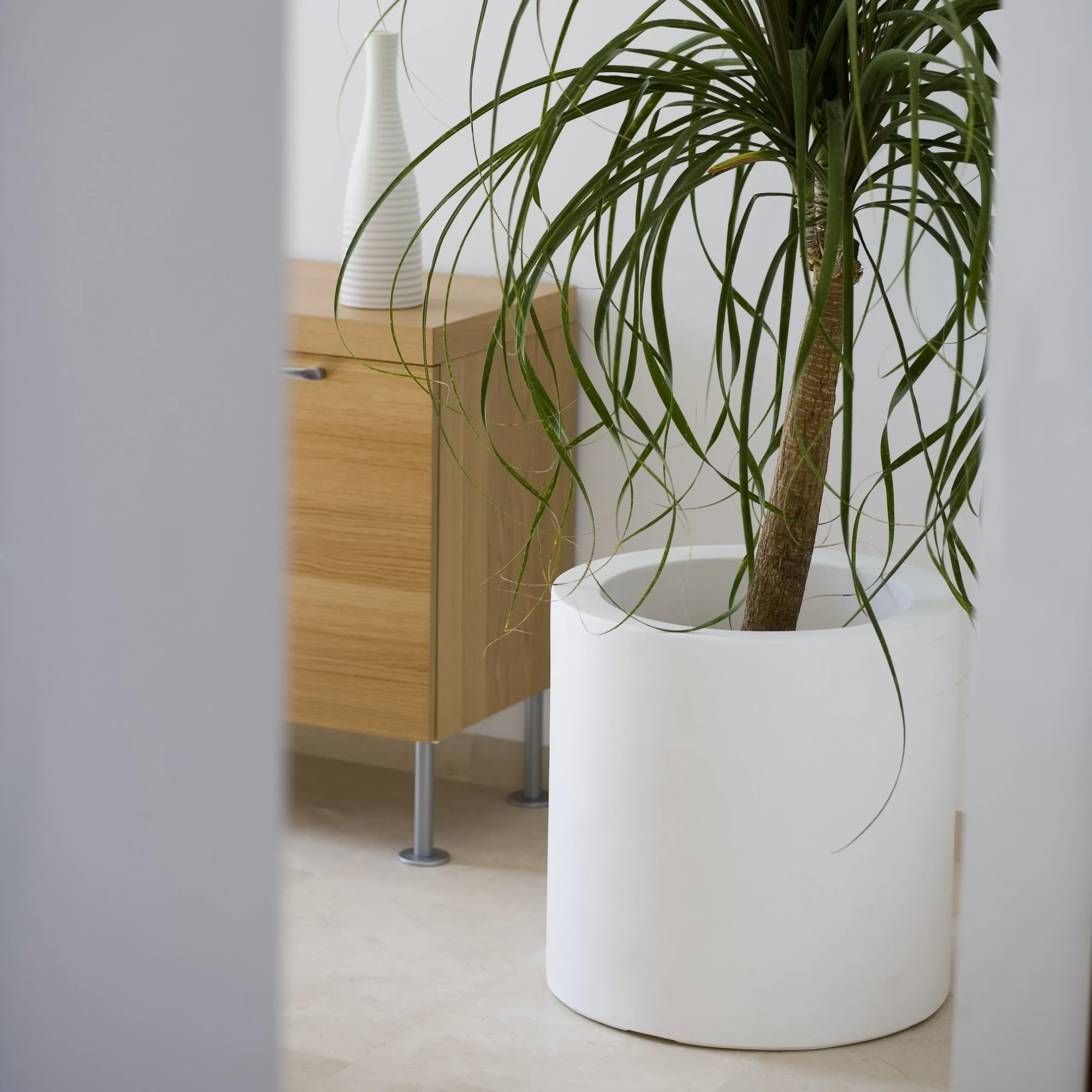 Designed for versatility, the Cilindro Planter includes integrated drainage for outdoor use and can be used with direct planting or as a decorative sleeve for pre-potted plants. Its lightweight yet sturdy composition allows easy repositioning while providing a stable base for shrubs, small trees, and statement greenery. The smooth, minimalist form fits seamlessly into contemporary homes and commercial environments alike, offering a refined way to showcase plants in a variety of sizes.