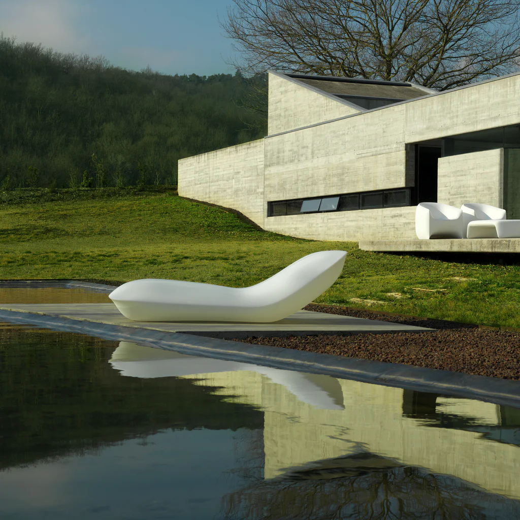The Pillow Sun Chaise brings modern sculpture and effortless comfort to outdoor living spaces. Designed with smooth, flowing contours, this contemporary chaise lounge offers an ergonomic reclining form that supports the body while creating a striking visual presence. Its low profile and generous proportions make it ideal for pool decks, terraces, and resort-style patios where relaxation and design go hand in hand.